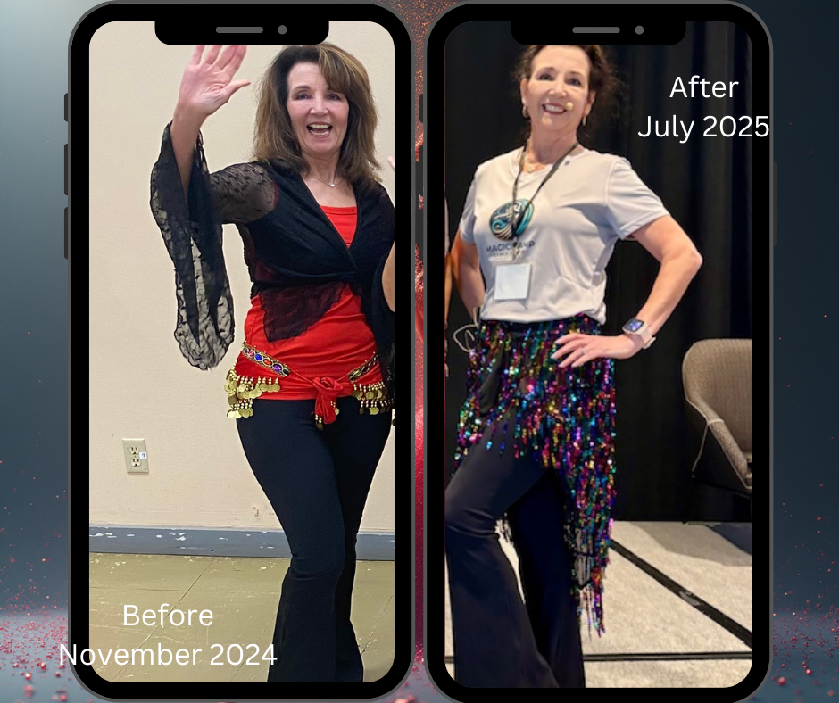 Hi, I'm Jami—your guide on this transformative journey. I'm the founder and owner of Magic Lamp Dance Studio, teacher with over 17 years of experience, lifelong student of fitness and nutrition, a Certified Health & Wellness Coach, and a loving GiGi to three beautiful grandchildren. I know what it's like to feel lost in your own body. A few years ago, my life looked successful from the outside—thriving dance studio, new accounting business, loving family. But inside, I was exhausted, struggling with inflammation, brain fog, and constant fatigue. I barely recognized myself in the mirror. Then a health crisis forced me to stop and listen to my body. During my recovery, I made a commitment: no more putting myself last. I dove deep into functional nutrition, breathwork, nervous system regulation, and of course, belly dance. I created my own personalized holistic system using real food, strategic movement, and stress management tools. The transformation was remarkable. My inflammation disappeared, my brain fog lifted, and my energy returned. Within months, I went from barely functioning to dancing six hours a day at a workshop in New Orleans—logging 20,000 steps daily and feeling incredible. Today, I know exactly how to nourish my body, regulate my emotions, and protect my health. I can walk away from sugar without struggle. I handle stress without spiraling. I feel strong, calm, and in control. I'm sharing this journey because I don't want other women to wait until crisis forces them to change. You can feel vibrant, healthy, energized, and joyful again—right now, exactly where you are. If I can rebuild my health and strength, so can you.